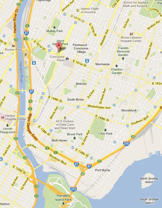 Just up the hill from Yankee Stadium and across from the Bronx Courthouse...